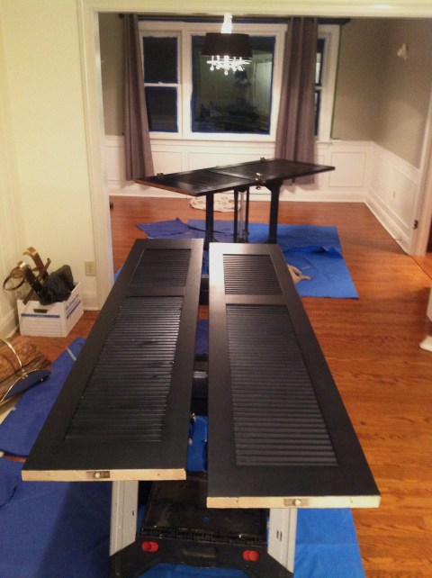 I primed the doors with tinted primer then painted a black semi-gloss that I had on hand. It took about 2.5 seconds to determine I was in love.