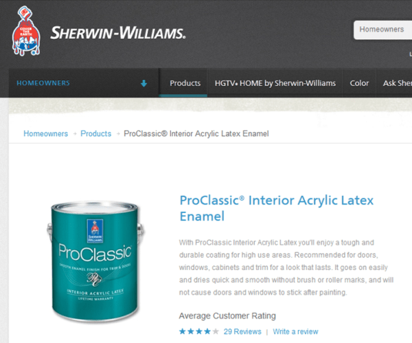 The paint is a little pricey ($55 a gallon) but it goes on easily and dries smoothly without marks, and will not cause the cabinet doors to stick after painting. It also doesn’t show any finger marks. In short, it’s just a better, harder finish that will hold up to kitchen wear and tear.