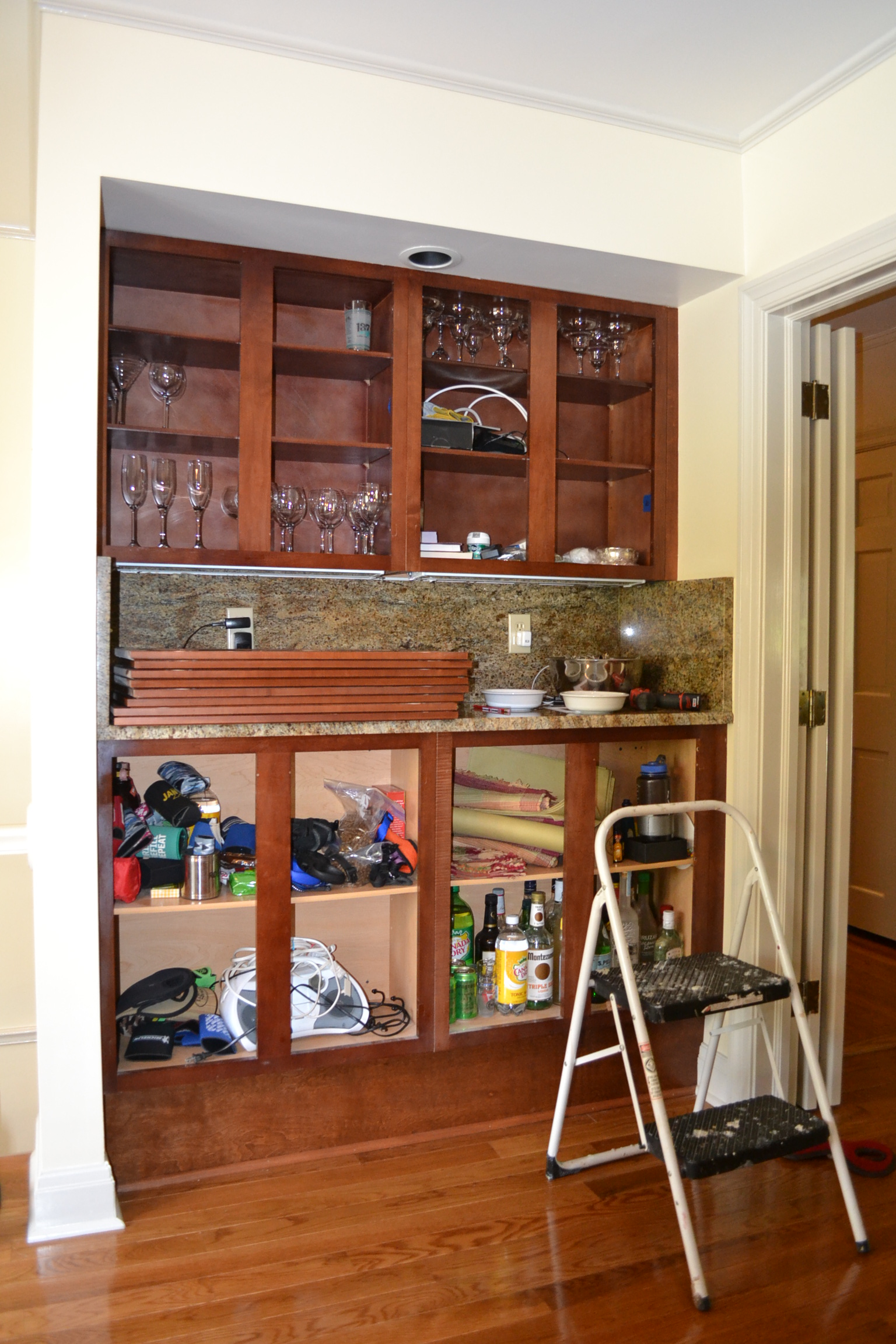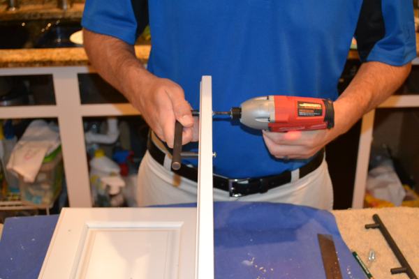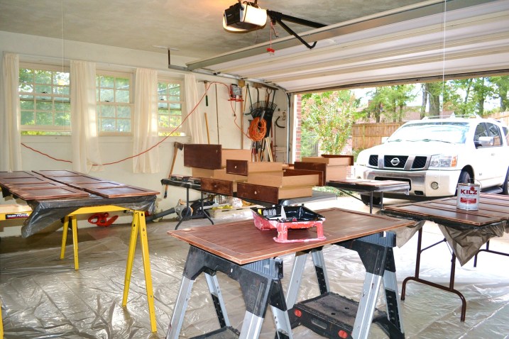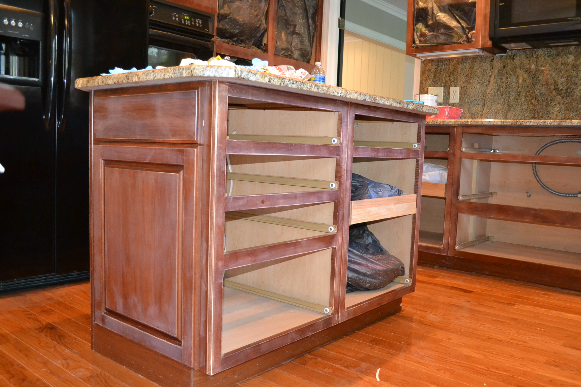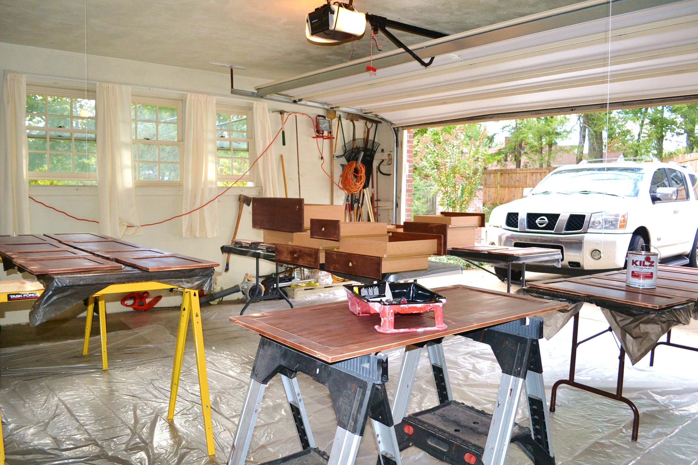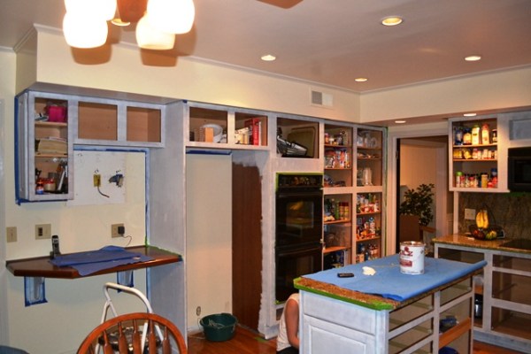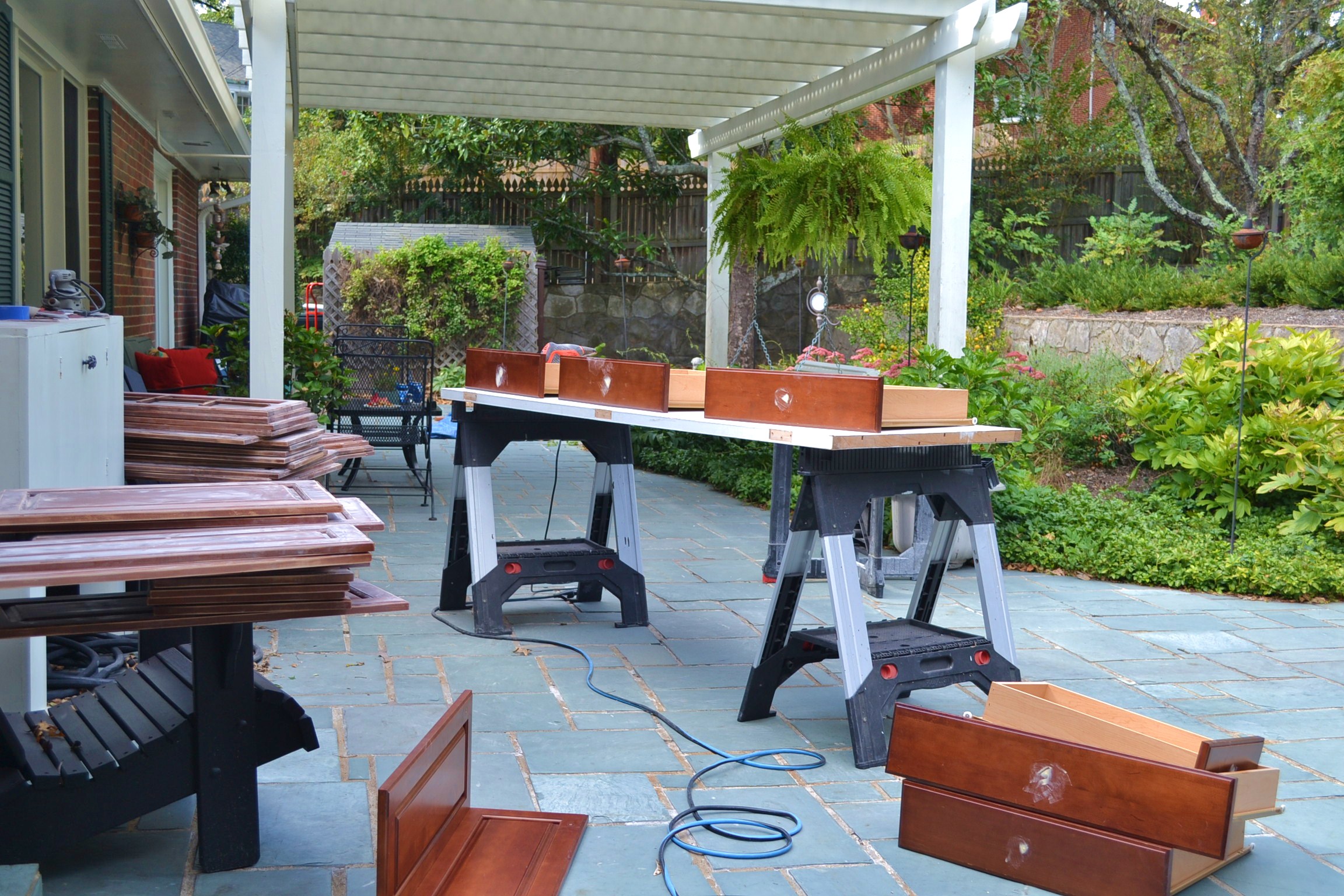 1st Saturday: I removed all 48 (yes, I said 48) cabinet doors and drawers from their hinges. I didn’t realize how many doors and drawers we had in our new kitchen: the removal process took almost 2 hours!