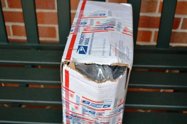 We bought 41 of the 7″ pulls for the ‘normal size’ drawers/cabinets and 7 of the longer 13″ pulls for the large drawers below the cooktop and the 4 over-sized pantry doors. I was hesitant to spend so much money on those darn drawer pulls (those suckers are expensive!) but my mom convinced me it’s the “jewelry of the kitchen”. She’s so smart. I never thought of it that way. You can only imagine my disappointment when I got home from work and saw this banged up, halfway open package on my doorstep: