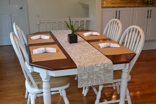 Before I reveal the complete after photos, I’m gonna show you something I did to one of my dumpster dives…ok, it wasn’t really a dumpster dive. It was a curb pick-up but dumpster dive just has a nice little ring to it. This traditional table was left to the waste side so I scooped it up along with 4 other matching pieces.