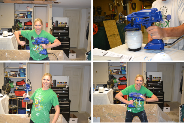 The most exciting part of this whole kitchen makeover (other than the finished product) is that I was given an awesome early birthday gift from Ryan! Like most 32 year old girls, I asked for a paint sprayer. Yep, I’m for real. I do not kid. I. asked. for. a. paint. sprayer. You could probably categorize ‘paint sprayer’ in the ‘vacuum’ column of things not to give a woman for her birthday, but let me tell you I was (and still am) SUPER STOKED! Not only did i get just any paint sprayer, Ryan sprung a few more buck-a-roo’s and bought me the Graco TrueCoat Plus from Lowes!
