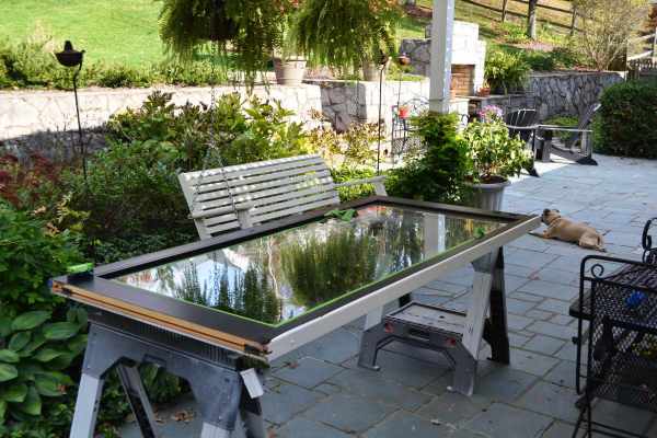 Ryan and I both took that Friday off to start this project since it would be the last 70 degree day we would have before winter. We needed to be able to remove the wood slider for painting plus allow proper ventilation since oil primer over wood is a must. We would have loved to use my new paint gun to complete the task, but there is absolutely, positively, no way I will allow oil anything to pass through my brand new TrueCoat paint sprayer. So needless to say we did it all by hand.