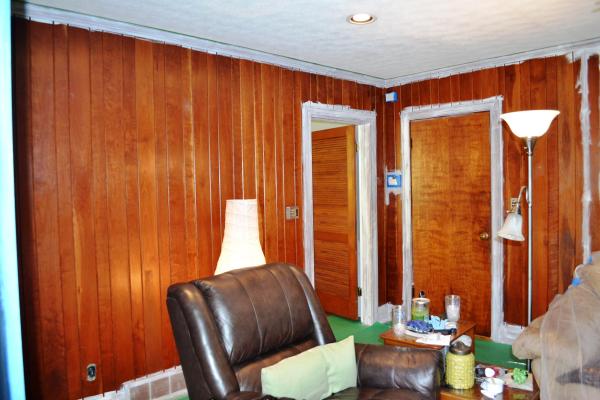 I think there will always be an ongoing debate of “should you paint it?” when referring to any wood surface. I’ve learned not to ask the question because in the end we are the ones who have to live with it. It always seems (without a doubt) that the men say “don’t paint the wood!” and the girls say “do it!”. This time I am referring to painting the cherry paneling in our den, just like I painted the cherry cabinets in the kitchen (kitchen makeover found here and here).