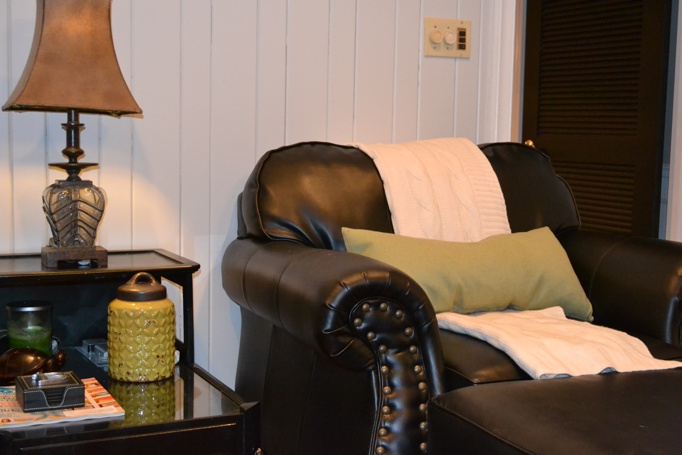 The back wall (where the recliner is temporarily sitting) will eventually house 2 new chairs. We ordered black leather chairs and ottomans from Broyhill to occupy this space (with a side table between). Those will become “our seats”. It’s been 5 weeks, so hopefully they will be delivered within the next week or so. Ryan didn’t want to give up his recliner for the sake of interior design, but when I showed him how comfortable a club chair and ottoman with nailhead trim can be he caved. Sort of.
