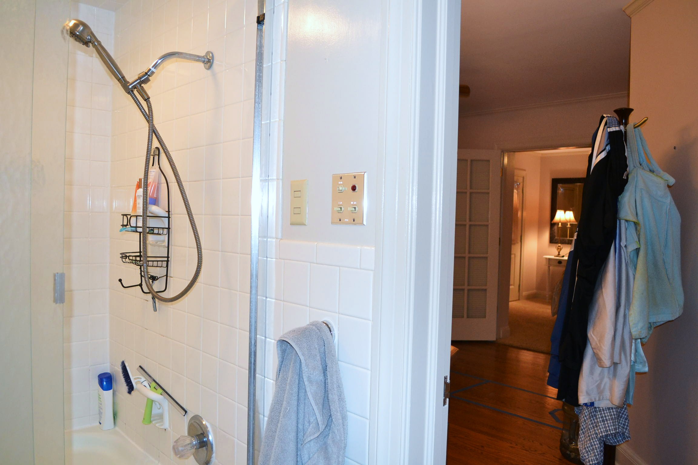 All three shower heads are Delta brand, also in chrome. The center shower head is a handshower on a slide bar for easy cleaning or handicap accessibility if something tragic happens down the road….always thinking ahead!