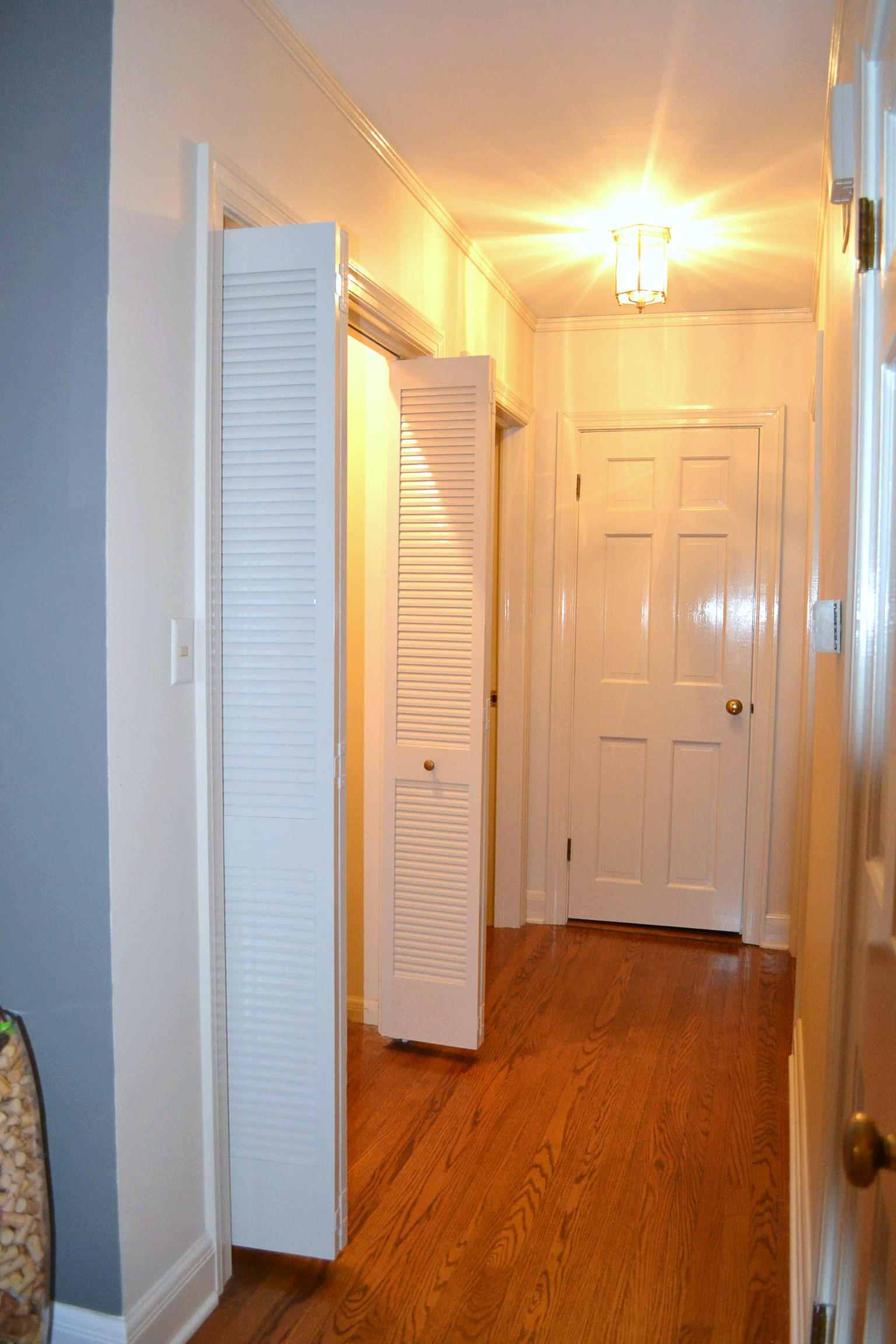 One of the biggest accomplishments (in my mind) was getting the foyer area mudded, sanded, primed, and painted….and plastic removed. This area took a very long time because we kept forgetting about it. We would work in the bedroom and bathroom and completely forget there was another area that needed attention. So FINALLY, we fit the foyer into our plans and I painted it to match the existing color.