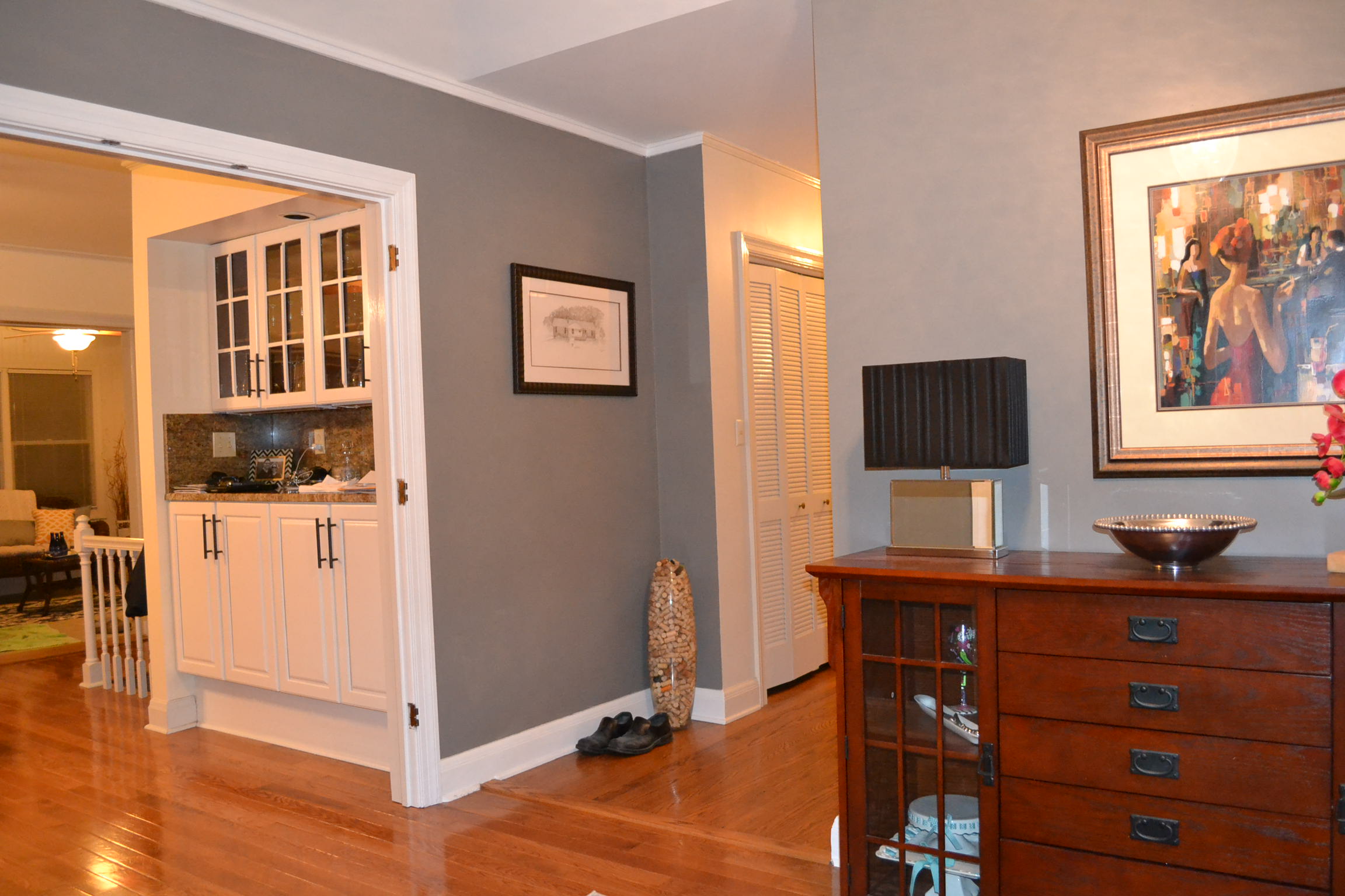 It feels good to finally have a sense of accomplishment in this renovation, even if we still need to add a door to the foyer coat closet, some floor trim and crown (oops!). Before the paint even dried, I immediately torn the plastic off the living room wall and moved the furniture back into the space. The sideboard and decorations all sat covered in our living room for 5 months. It felt like Christmas morning when I uncovered them!