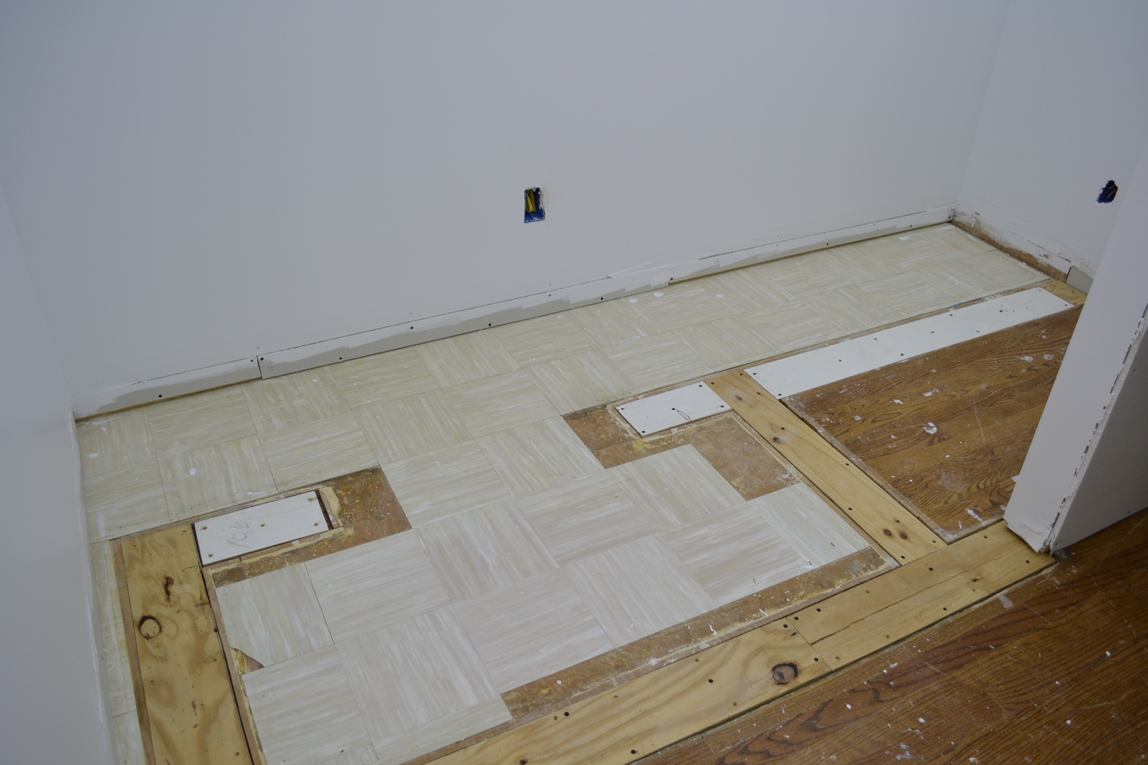 Half of the master contained hardwood flooring that I believe was original to the house. The other half was carpet with sub-floor beneath. Why half and half? Remember that brick wall we torn out? That was an addition by the previous owners, hence no wood floor in that space.