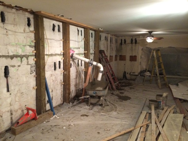 So what does all this mean? It means we are going to have a ridiculously large 4 car garage. We still will hang some cabinetry and move our basement fridge into the space, there just wont be a washer and dryer, or walls to keep it all company…And the dogs will continue to get bathed in the 1965 blue guest bathroom upstairs 😜.