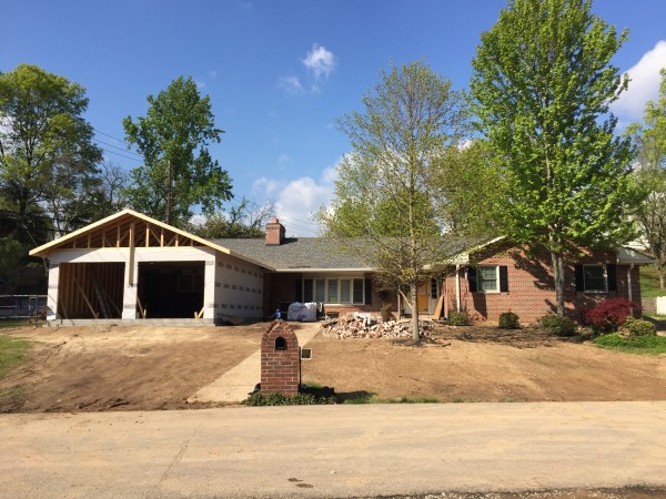 Our architect drew up a plan that extended our garage 30 feet towards the front of the house. We ended up scaling it back to 28 feet. It will essentially be a big box (no attic) with two single garage doors, a man door on both sides, and lights/electrical. The front wall of our current garage will get knocked down (and supported by a LVL beam) and the space will open up to a 4 car garage.