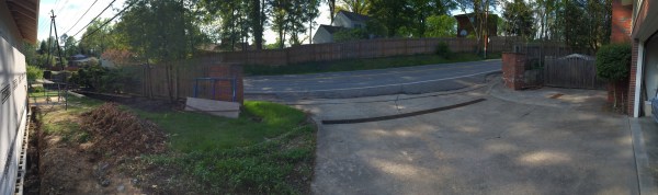 Obviously the new driveway will extend from the street to the garage, but we are also pouring concrete up the side of the new garage wall so there will be plenty of parking. The current flowerbed that’s along the front yard fence will remain, although we will probably plant new bushes.