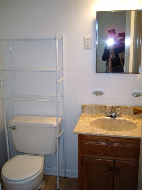 The master bathroom was anything but “Master” when we bought our home, so as you suspected, it became project #2 after the wall tear down between the two bedrooms. The original master bath (our house was built in 1964) only contained one toilet and a very small vanity and that was unacceptable to us modern folk. The vinyl flooring was yellow (i think). I really don’t remember much of that bathroom because we gutted it so fast. I told you we bought our home in January 2006 but we didn’t actually move into it until April 2006 due to the major master bedroom/bathroom renovations. When we moved into the house our “Master Project” wasn’t actually finished. We were forced to set up our bedroom in our basement family room. So there we slept for several weeks and used our 1960’s pepto-pink basement bathroom…it was almost as bad as camping!!
