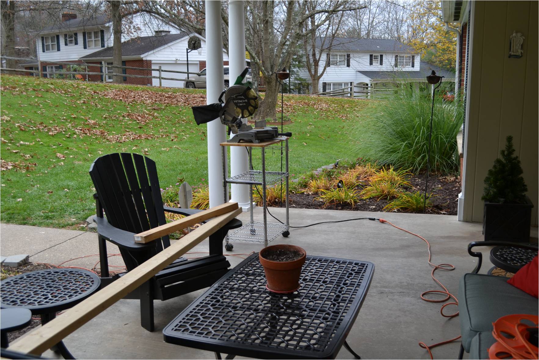 Because our garage is in the basement and our kitchen is the floor above, Ryan decided it would be much easier to create a make-shift work shop on our front porch. This actually works out really well for many of our projects except for the days when it’s snowing…buuurrr!