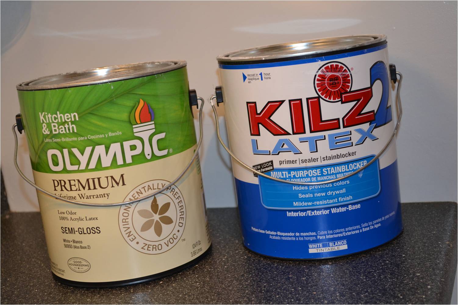 The color of our kitchen is Benjamin Moore’s Wickham Grey. It is color matched to Olympic no VOC paint. This paint is environmentally preferred because it’s no VOC (the chemical that causes paint odor). So if you have kids in the house, animals, or just don’t care for that awful paint smell this paint is definitely the way to go!