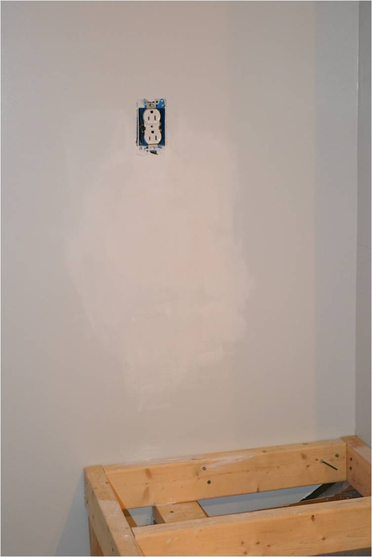 Once the primer dried, it was time to (finally) paint! If you know me at all, painting is my favorite pastime. I haven’t figured out why I like to paint so much but I think it has something to do with instant change. I love change. I also like moving objects and furniture from room to room every now and then just to mix it up. The paint turned out seamless, but would you really expect anything else from Mrs. Bauer? haha! You would never even know there use to be a crazy hole there and now we will be able to use this outlet for a crockpot, etc.. on the new counter.