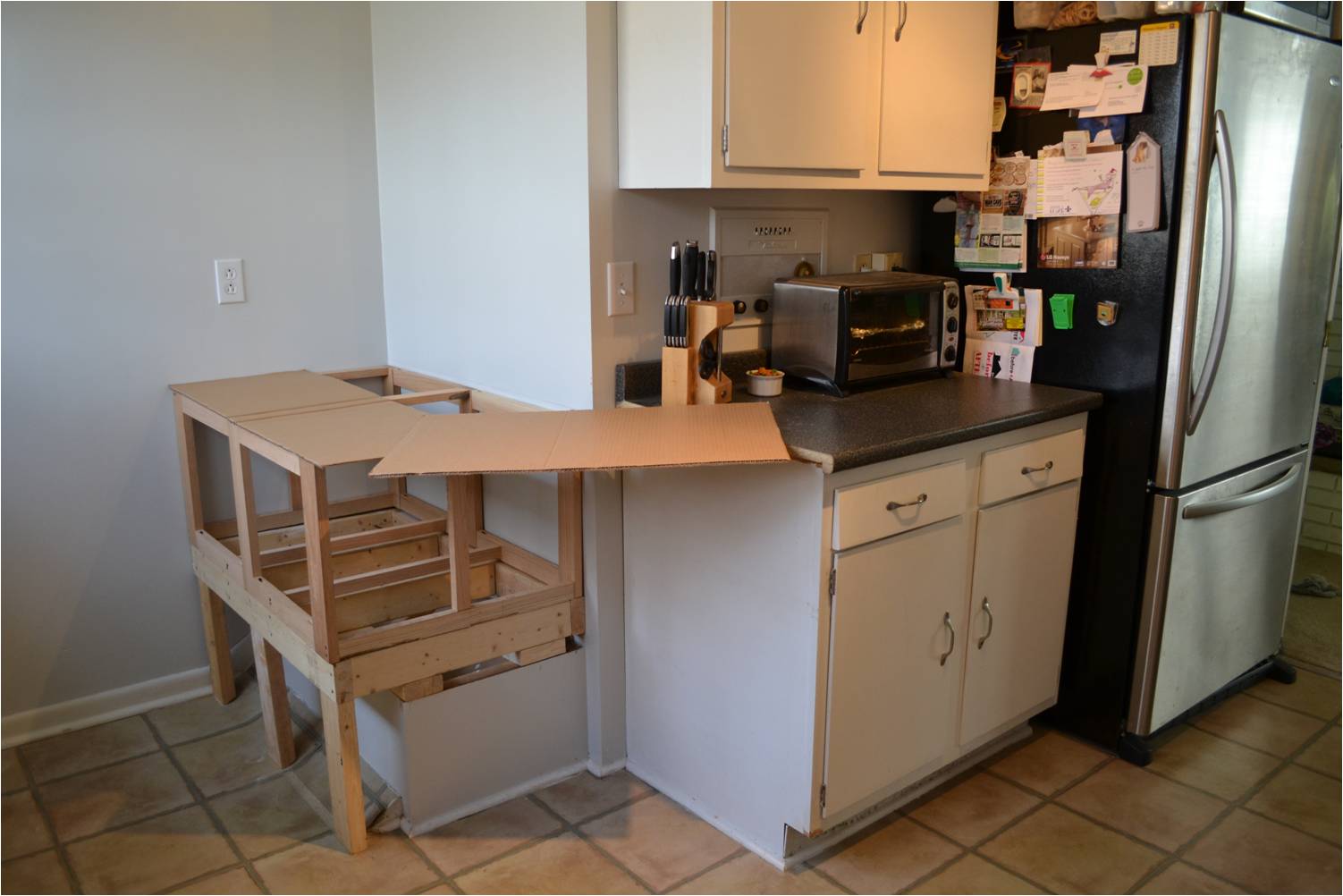 This may seem like small potatoes, but we are totally thrilled this project is starting to take shape! To get the feel of how the counter will flow we placed some cardboard pieces on top…