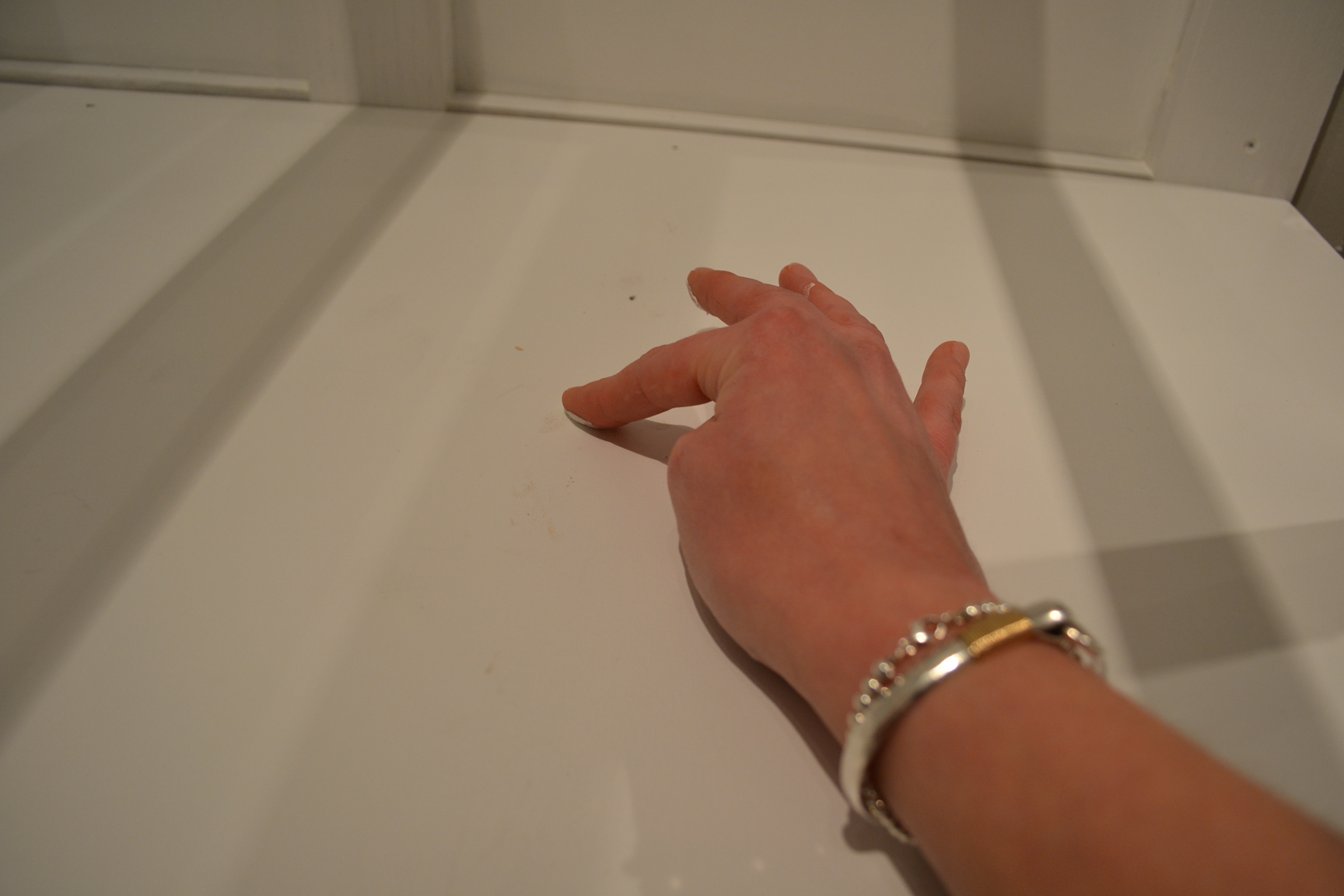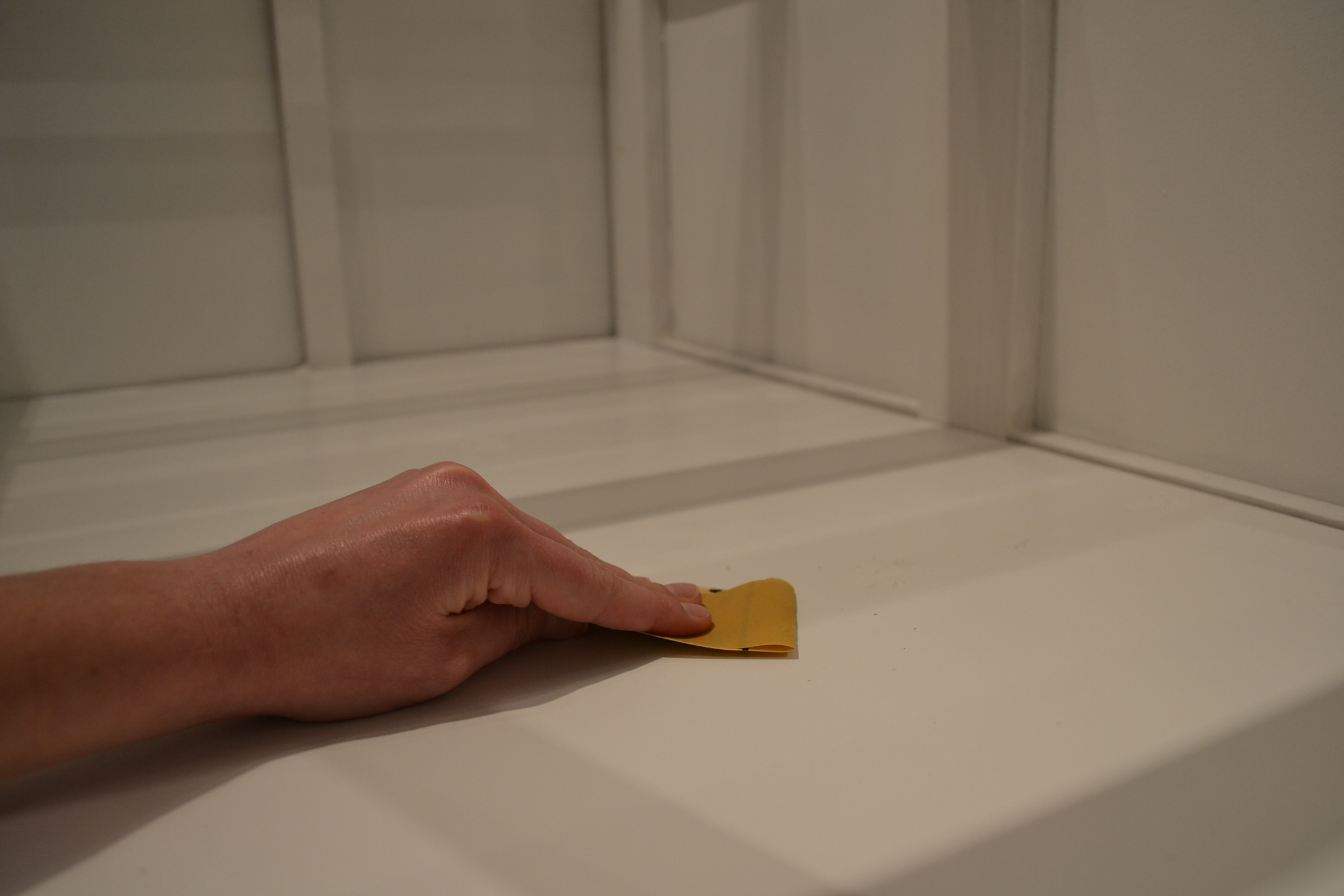 But of course it’s never as easy as that! Here comes Michelle’s part: putty those nail holes and sand for re-touch.