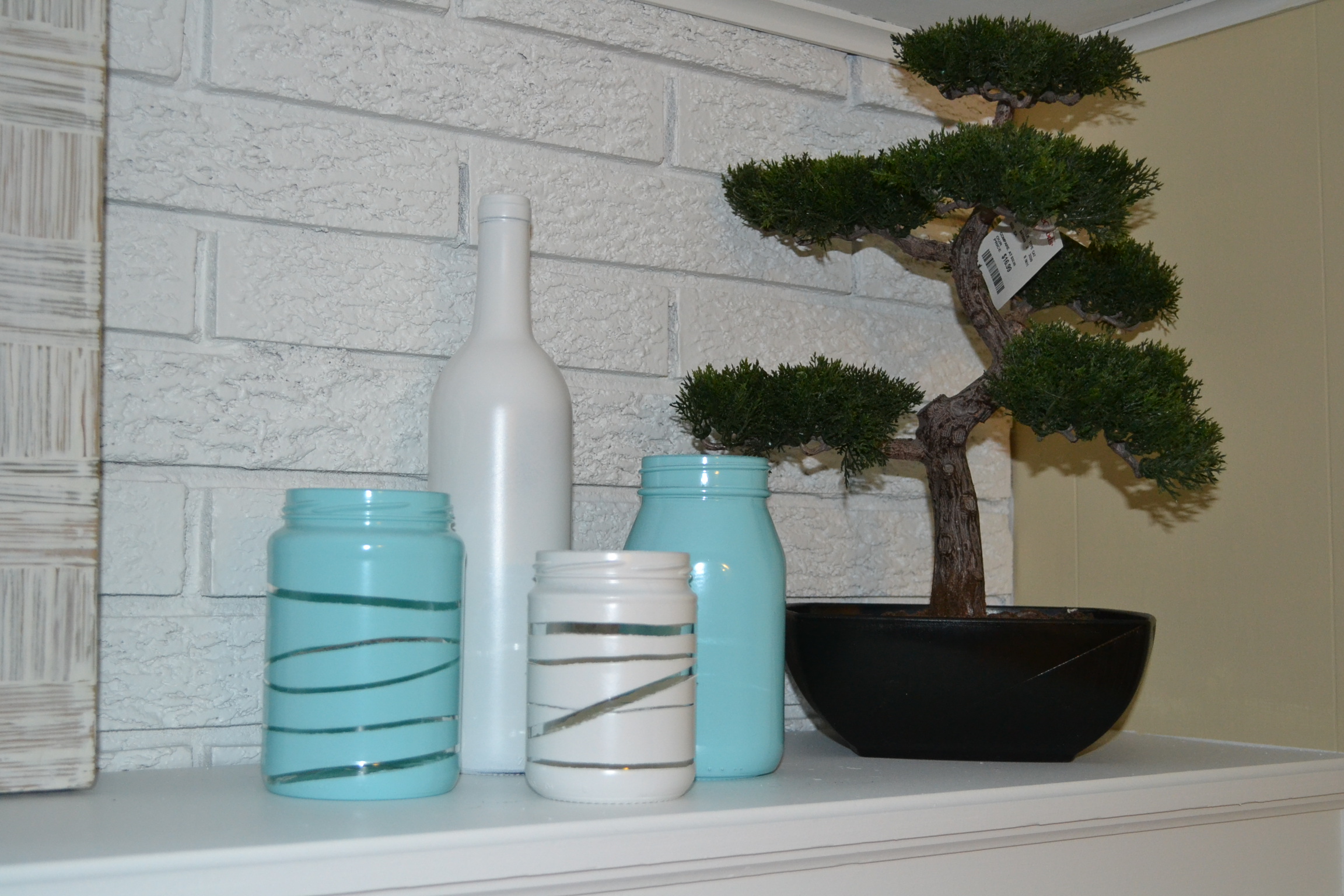 I went to my DIY board and picked out a ‘pin’ to knock off the list. I’ve been saving pickle jars, salad dressing bottles, and wine bottles for a few months now and they are starting to pile up, hence my decision to craft something using them. I had 4 pins on my DIY board that involved glass jars.