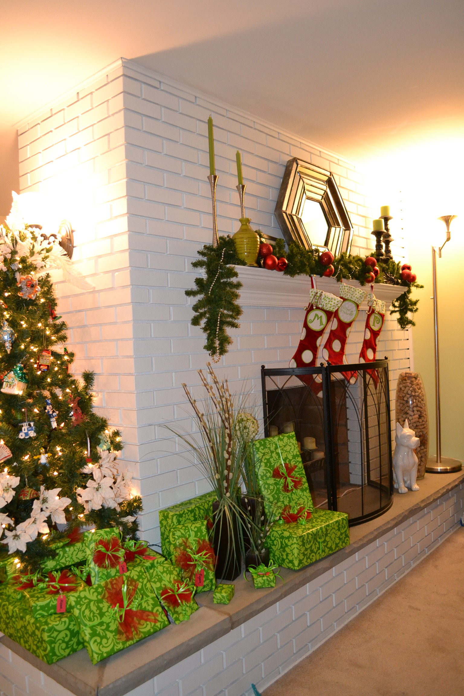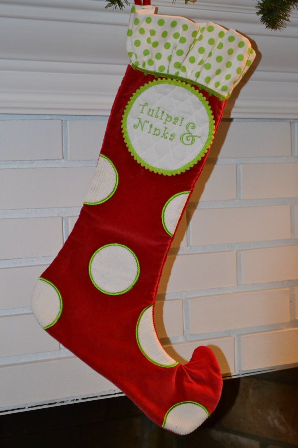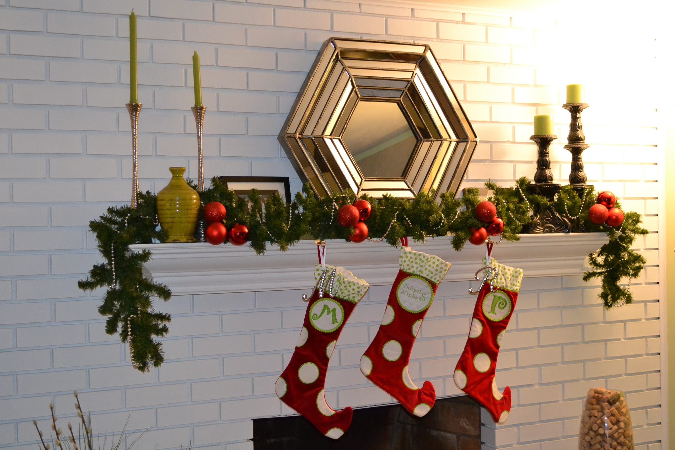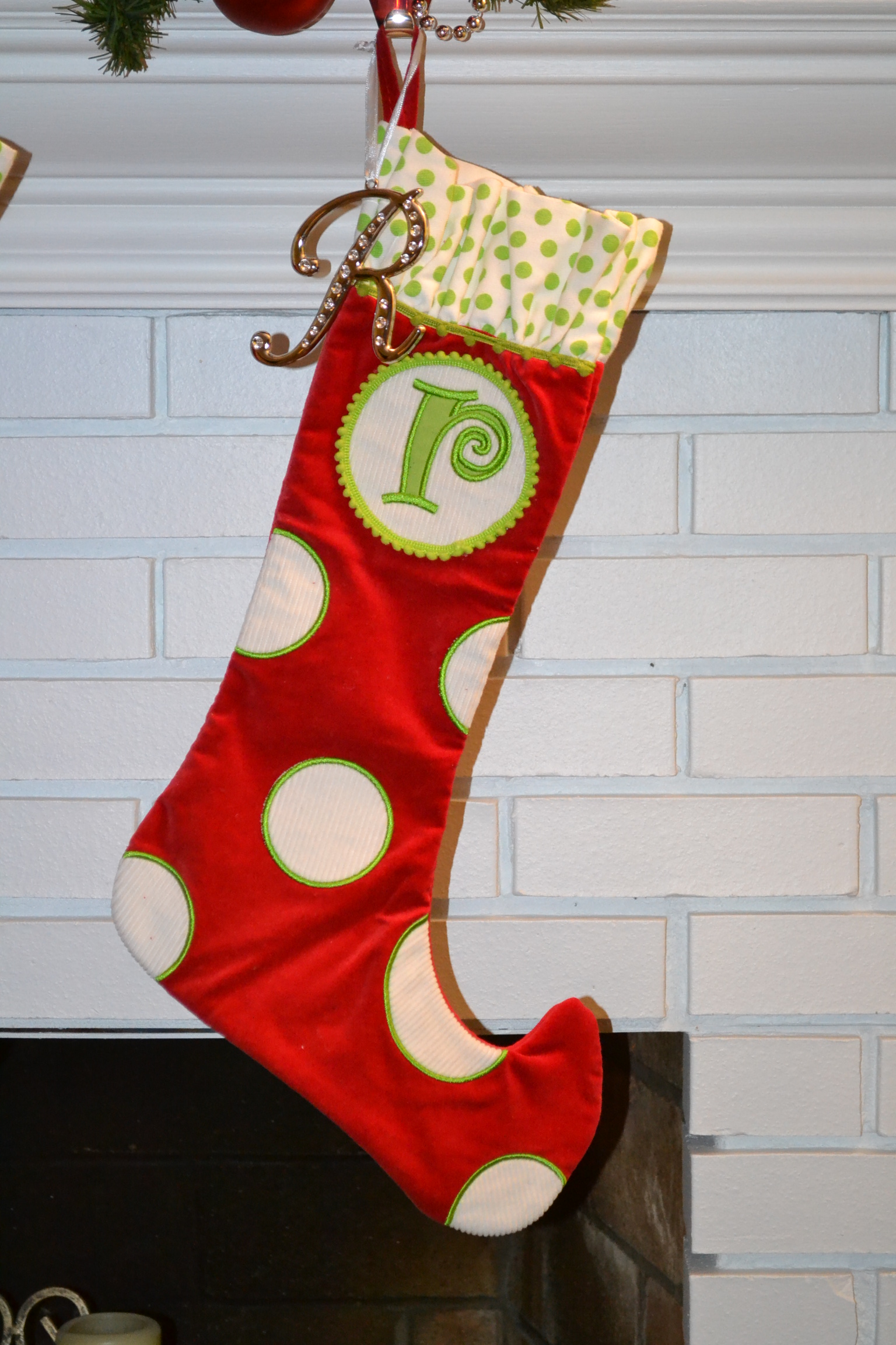 When I started decorating for the Christmas season (mentioned here), I neglected our fireplace mantle. It took me 5 days before Christmas day to get ‘er done. Last year I fell in love with a really cool monogrammed Mud Pie brand Elf Stocking at some random store in Atlanta. (this stocking was found here)