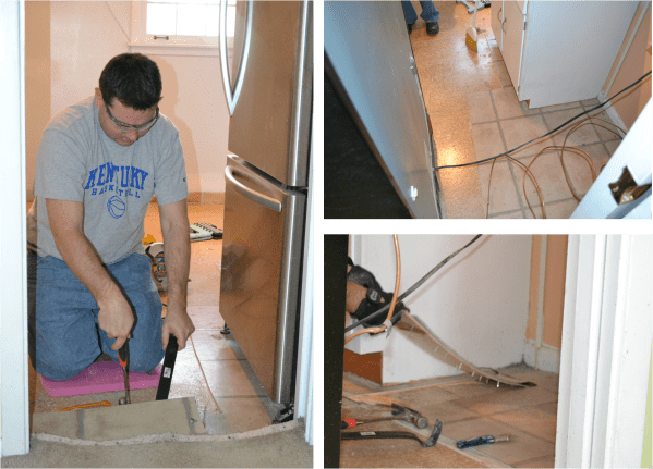 Ryan’s job was to measure and cut each piece of Hardie-Backer. Our kitchen is fairly narrow, so it wasn’t as easy as plopping down each sheet, unfortunately.