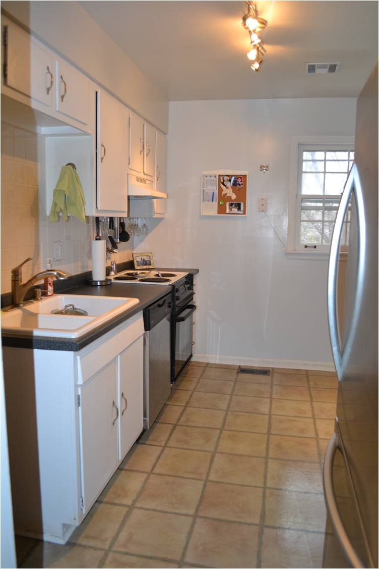 Tile project #7 can officially be classified as complete! I must say it moved moderately fast. In true Before and After DIY fashion, here is the before laminate: