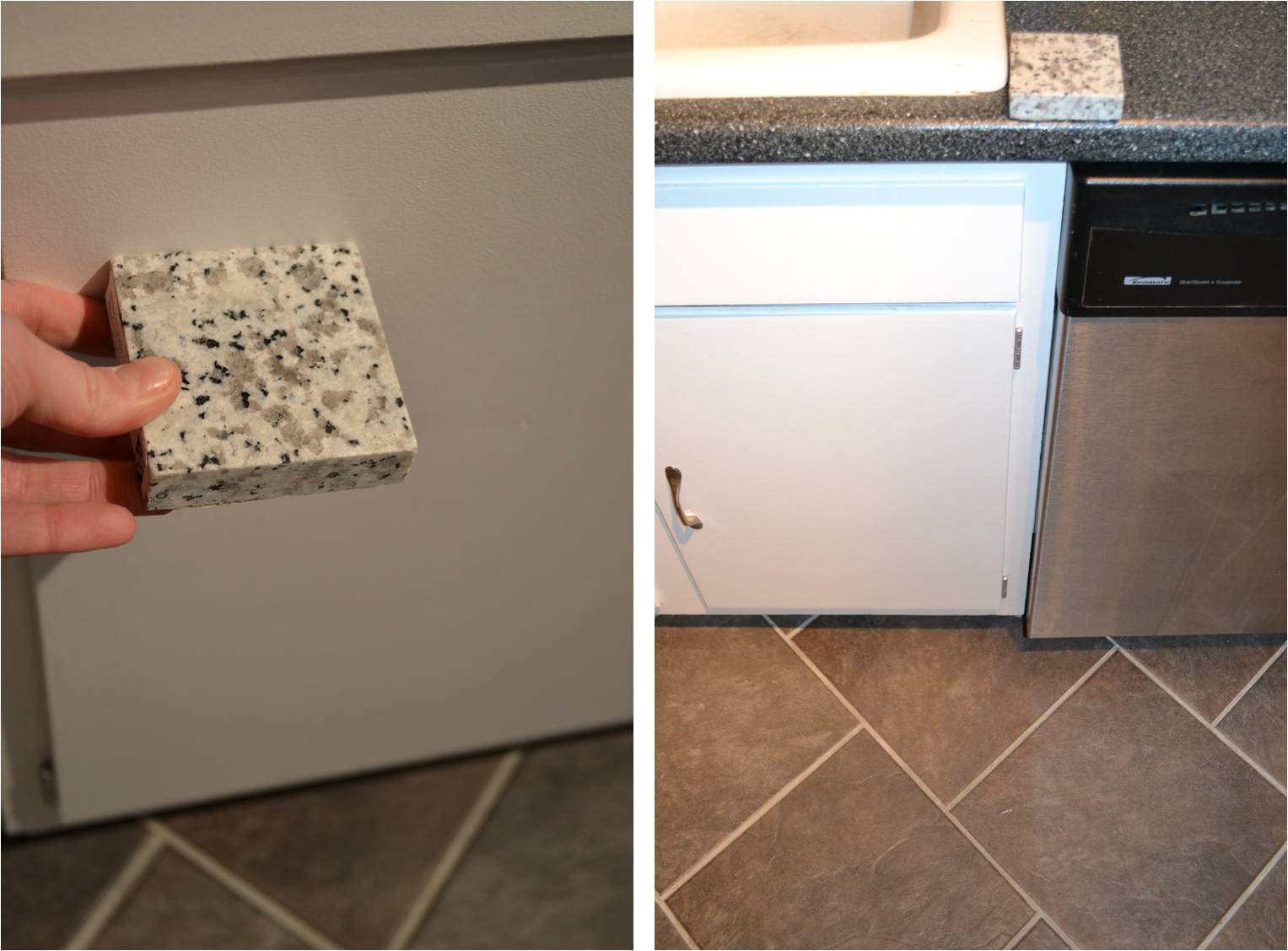 The original “Ebony Star” laminate is a textured finished (found here). It was measured and templated 3 weeks ago by a local countertop company but came back as “discontinued’. Having a discontinued countertop spurred us to go back to the granite option. We decided it was ridiculous to replace the entire kitchen with a new laminate when we could do granite for a few hundred bucks more. (seriously, it really was only about $500-600 more for granite). Because we went back to granite that meant we would have to take the extra steps to address our support issue, which we’ve done. That’s now small potatoes in the whole scheme of things.