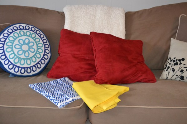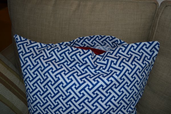 It took a little more muscle and a few ripped seams, but I was able to get both red throw pillows into their new custom sewn covers.