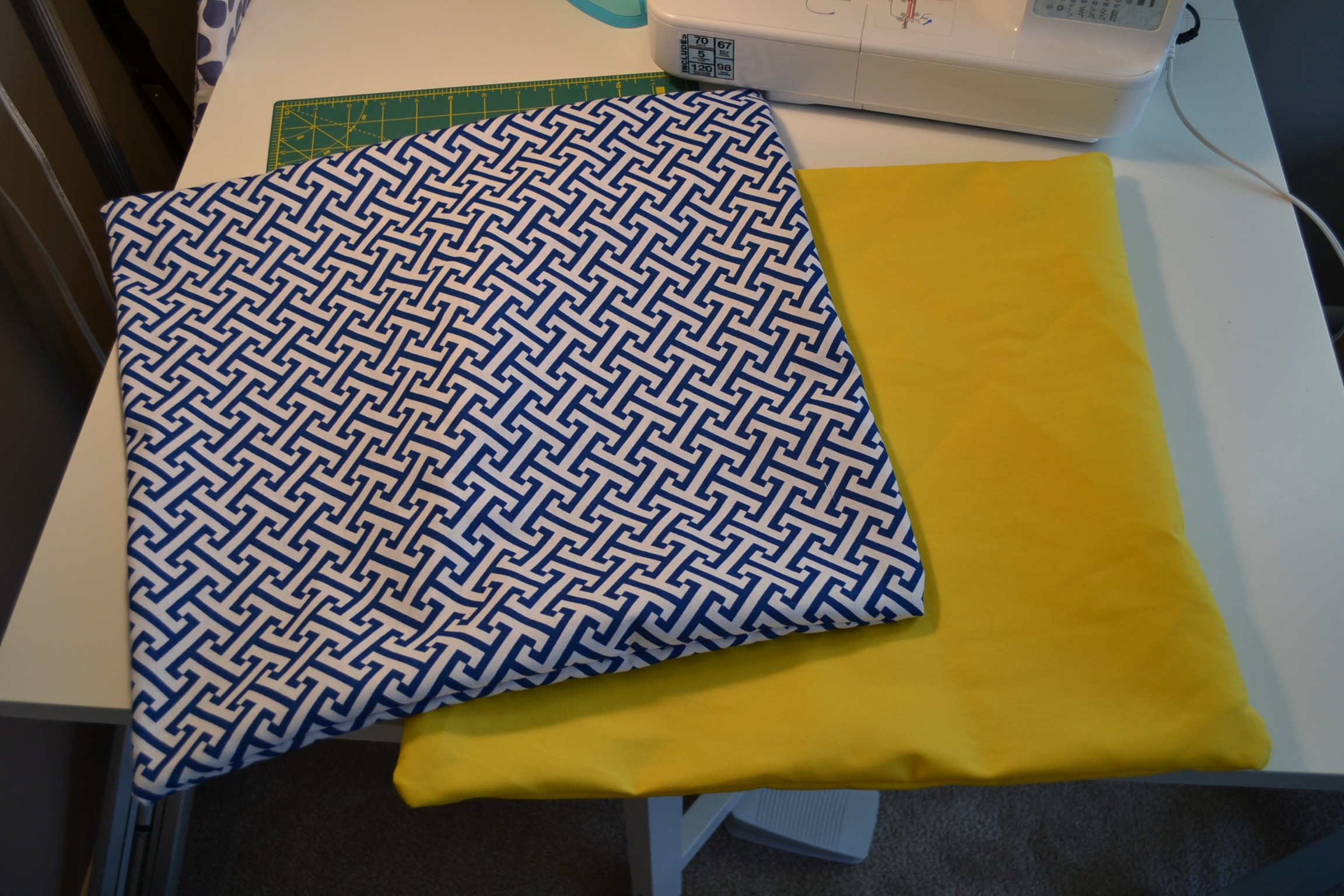 It only took about 15 minutes to get the two pillows sewn together. After turning the fabric right side out, this is what my pillow shells looked like: