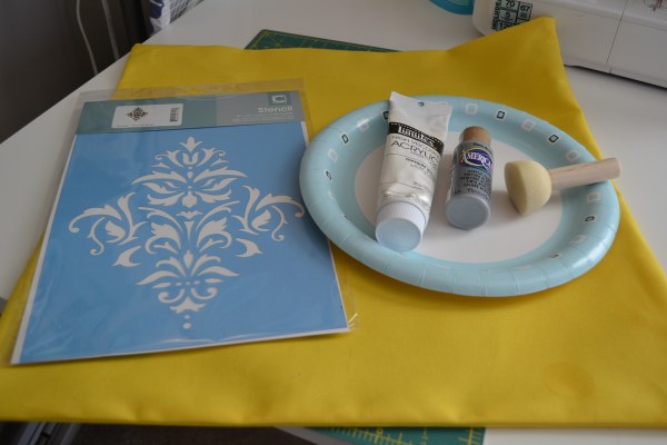 I picked up a damask stencil ($2.50 with coupon), some acrylic paint, and a stencil brush at AC Moore.