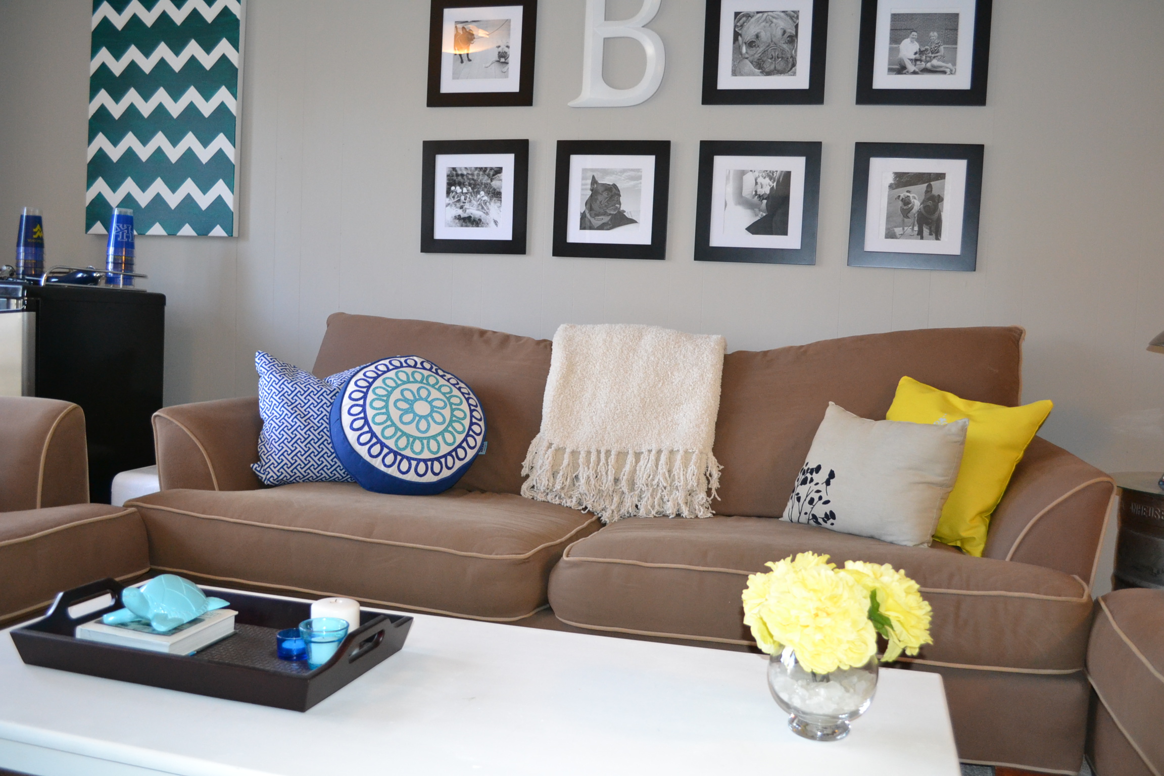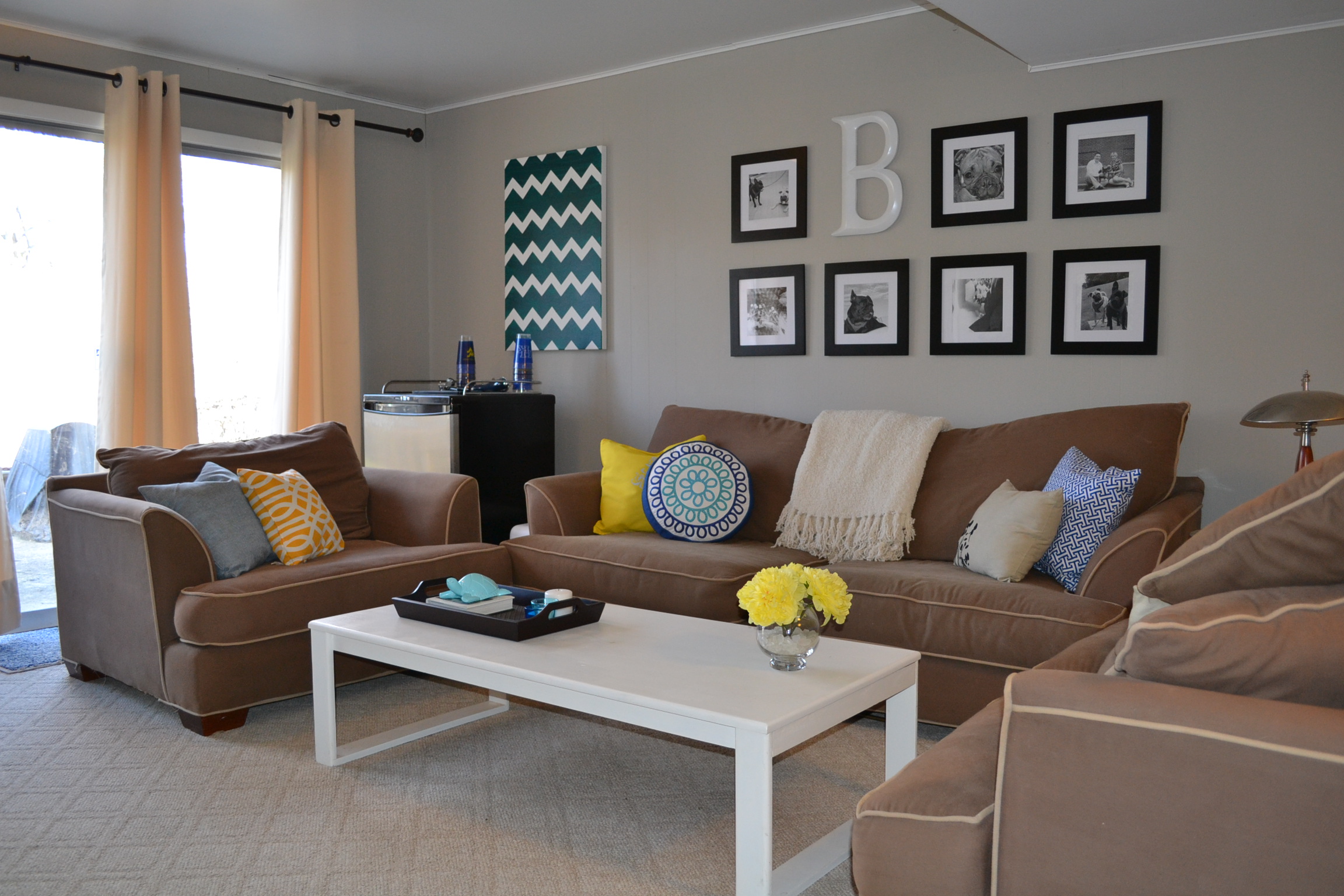 In true Before and After DIY fashion here are some ‘After’ photos of the basement with the new pop of yellow!