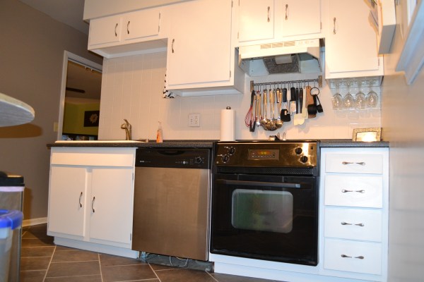 That leaves us to 5 years later after the cabinets were painted, the laminate floor was updated, and we purchased new stainless appliances: